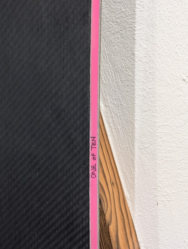 One of Ten Board (Baujahr 2025): Nur fünf Boards weltweit: Das handgefertigte One of Ten aus Zürich vereint Carbon, Kevlar und Rennbelag in einem markanten Big-Mountain-Shape – gebaut für unvergessliche Lines, radikale Turns und pures Freiheitsgefühl.